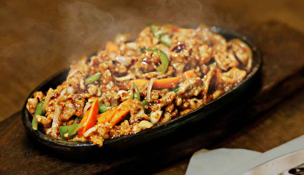Sliced beef glazed in high heat and cooked with red chili, capsicum, carrot & onion