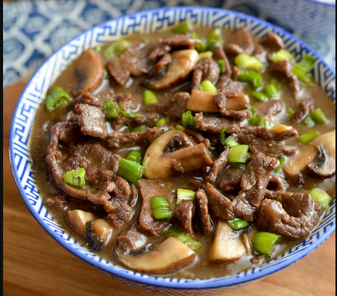 Sliced beef & mushroom cooked with oyster sauce