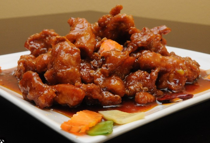 Crispy boneless chicken prepared with hot & spicy Sze-Chuan sauce